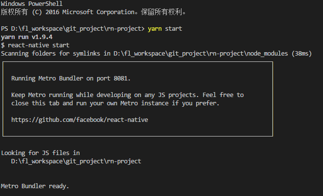 我们在工程目录下面右击鼠标选则git bash,会弹出命令窗口输入 yarn start 启动工程服务,启动成功后如下图